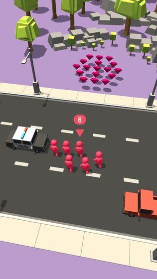 Try to pass little people to the other side of the road. Be careful about city traffic and do not let your crowd crash with cars ! All you need to do is transverse run city with your mob.