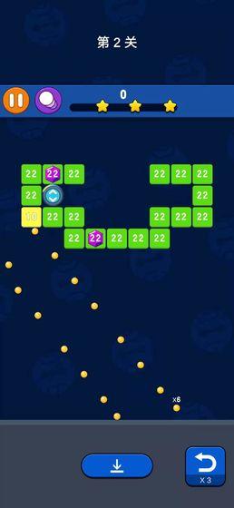欢乐消砖块是一款超休闲的弹珠打砖块游戏 滑动屏幕,瞄准方向,发射弹球!