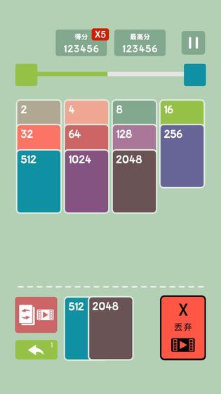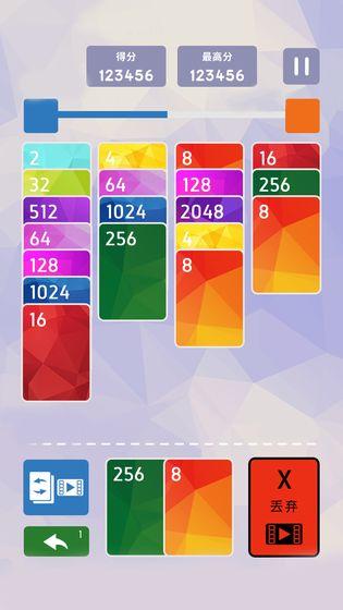 一款数字消除的叠叠卡游戏~ 在有限的空间内,堆叠更多的卡牌合成大数字并得分