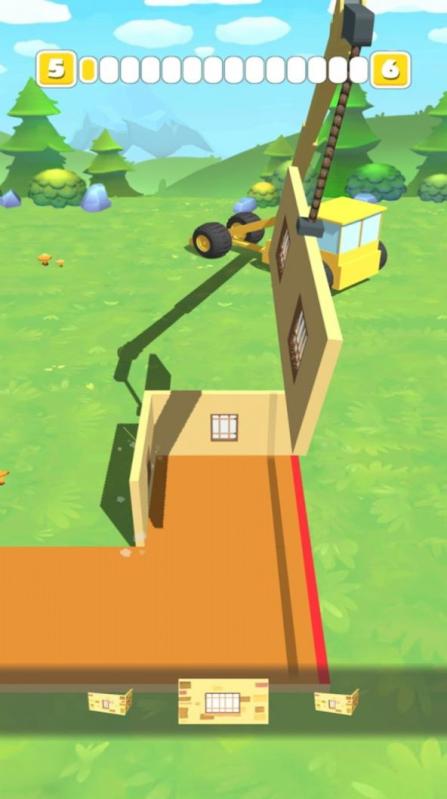 建造我的豪宅3D游戏是一款趣味建造类冒险手指游戏,游戏中玩家需要操作吊装机不断地将房屋的部件组装起来,通过不断地组装更多各式各样的房屋来完成游戏的挑战,游戏中玩家需要按照自己的想法来完成整个房屋的拼装,游戏中玩家通过不断地尝试来解锁更多的游戏内容。 建造我的豪宅3D游戏特点: 1.游戏中玩家需要根据自己控制的吊装机目前抓取的部件来确定应该如何拼接,游戏中玩家需要按照步骤来一步步的完成整个房屋结构的组装; 2.游戏中玩家可以从屏幕下方看到待选的房屋部件,玩家可以自由的选择自己的拼接顺序,当然玩家必须组装完墙壁才能上房顶; 3.游戏中屏幕上方的进度条会显示玩家的材料利用情况和完整的关卡完成程度,玩家可以以此为根据来判断房屋的组装情况。 建造我的豪宅3D游戏亮点: 1.游戏的关卡难度也是由浅入深,玩家一开始需要拼接的房间大小和复杂程度都是比较低的,玩家可以快速完成挑战来解锁更多的游戏内容; 2.游戏中随着关卡的深入,玩家会逐渐接触到二层楼房或者更复杂的房屋结构,玩家在游戏中需要不断的尝试来找到正确的方式方法; 3.游戏中玩家需要找准时机将不同的组件放到合适的位置,游戏中玩家可以按照自己的想法来进行设计建造完成游戏的关卡挑战。 游戏简评: 作为一款益智建造类游戏,游戏比较考验玩家对时机的把握程度,玩家需要根据自己的操作情况来找准时机放下房屋的组件,游戏中不建议玩家做大幅度的移动,尽可能小范围移动,避免过度的摇摆导致放歪了。