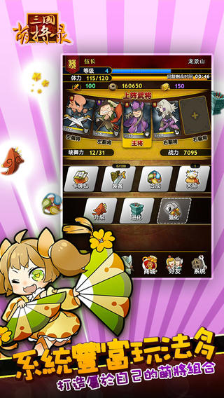 《新三国萌将录》是以三国时代为故事主背景,集武将养成、卡牌对战、布阵策略、兵法修行、好友互动等玩法于一体的经典卡牌游戏。