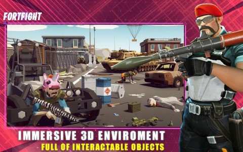 战斗之夜大逃杀3D游戏:吃鸡玩法现在依然非常流行,在百人生存的基础上加入了建筑功能,让战局存在更多的可能性。你可以去收集木材、石料等一切资源,在空地上也能搭建出堡垒作为掩体,受到子弹功能会降低建筑的血量,一旦被破坏要及时进行修复,看谁能够在这一场淘汰赛中取得最终胜利。