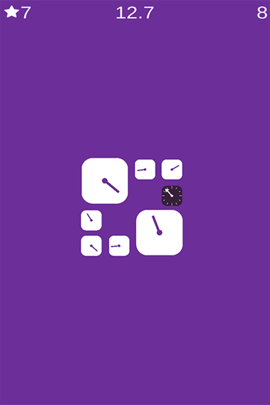 跟随指针转动的旋律,在合适的时机点击屏幕释放因子,顺利的跳跃到其它的时钟上。每一个时钟转动的速度都有所差异,观察指针转动的频率,找到关键的时机,把握好释放的时间,才能更加顺利的游戏。