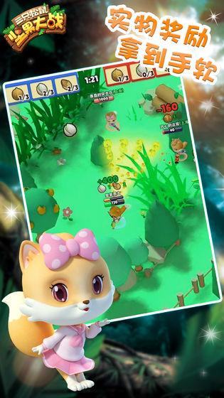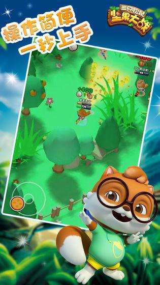 三只松鼠继携手国内动漫巨头之一的功夫动漫, 成功打造同名3D动画大片后。 又跨界涉足游戏领域,联合国内顶级游戏开发团队,重磅推出年度力作《三只松鼠坚果大战》网络游戏,史上最强劲的坚果大战一触即发。 《三只松鼠坚果大战》是一款休闲竞技的网络游戏。以三只松鼠卡通动漫为原型,以抢夺和收集坚果为战斗目标。游戏携带海量萌宠强势来袭,即将掀起全网前所未有的最萌大作战。 游戏特色 ◆ 来自松鼠星球的三只松鼠——小贱,小美,小酷扮演角色,每个角色都有独特的攻击方式及不同的战斗力 ◆ 10人混战或3V3团战方式战斗,过程惊险刺激 ◆ 全新的竖版单手操作,简单方便 ◆ 3分钟一场的轻量级玩法,随时随地玩 ◆ 换肤换装过程好玩有趣 ◆ 游戏大福利—藏宝箱兑换券,可兑换实物的兑换券, 游戏玩法 化身为战斗力爆表的小酷,在3D梦幻森林王国中,收集美味的坚果,偶尔攻击个萌小宠顺便抢夺一下坚果,我有芥末喷射枪、开心果机关枪、火箭炮等武器,埋伏阻碍通通不再话下,我神勇无比,配上超级大招,过五关斩六将,森林国王就是我的! 在万物皆萌的松鼠王国中,快快与小贱、小美、小酷一起缔结萌约,加入这场最萌大作战吧!