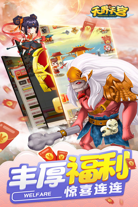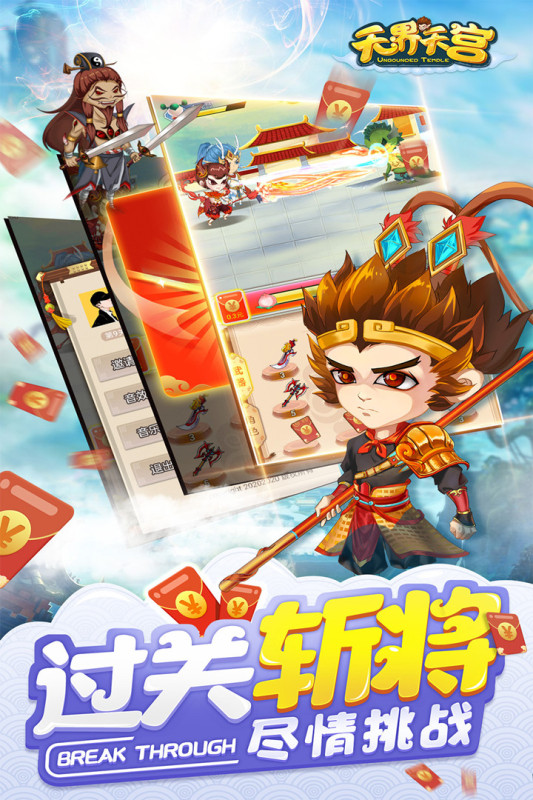 无界天宫是一款经典的西游背景的战斗冒险游戏,趣味的西游冒险优势,个性的丰富的关卡以及特色的西游武器自由的打造装扮,精美的清新的画风感受不同的妖魔鬼怪,Q版的大世界带给你闯关的乐趣快感!西游记中印象最深应该就是孙悟空大闹天空了,那么就一起再次大闹天空吧,这个西游的将任你来去了,岂不妙哉!