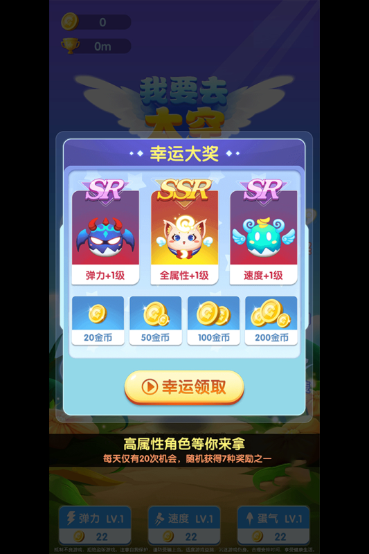 游戏免费提供多种皮肤,控制萌萌的角色,突破自己的极限,一飞冲天,飞的同时需要多开闪电障碍,来达到更高的高度