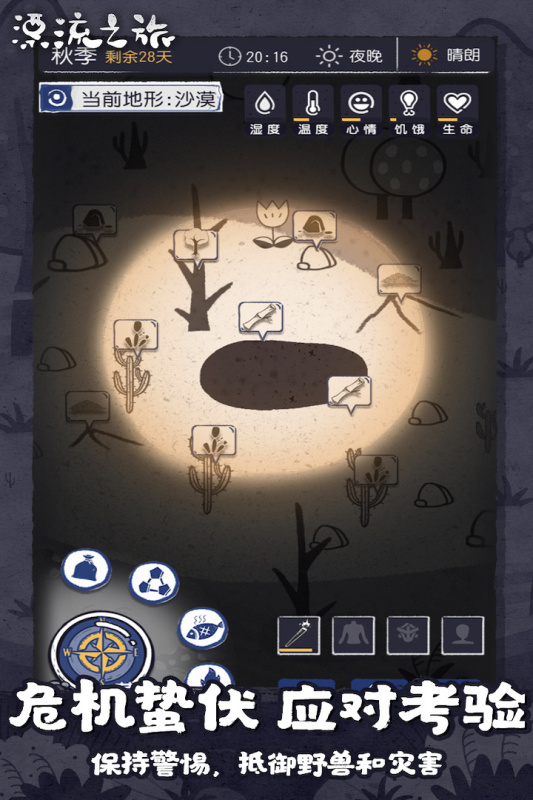你因为一些不知名的原因流落到漂流岛,岛上没有任何人,周围也没有船只,你必需用本人的聪慧在残酷的野外环境中求生,并且抵御各种奇怪生物和自然灾害的威胁。