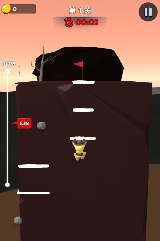 玩家在游戏中通过点击或滑动屏幕控制角色攀登悬崖。在攀登过程中,选择合适的攀登路线,选择合适的时机躲避障碍,在规定的时间内完成闯关。