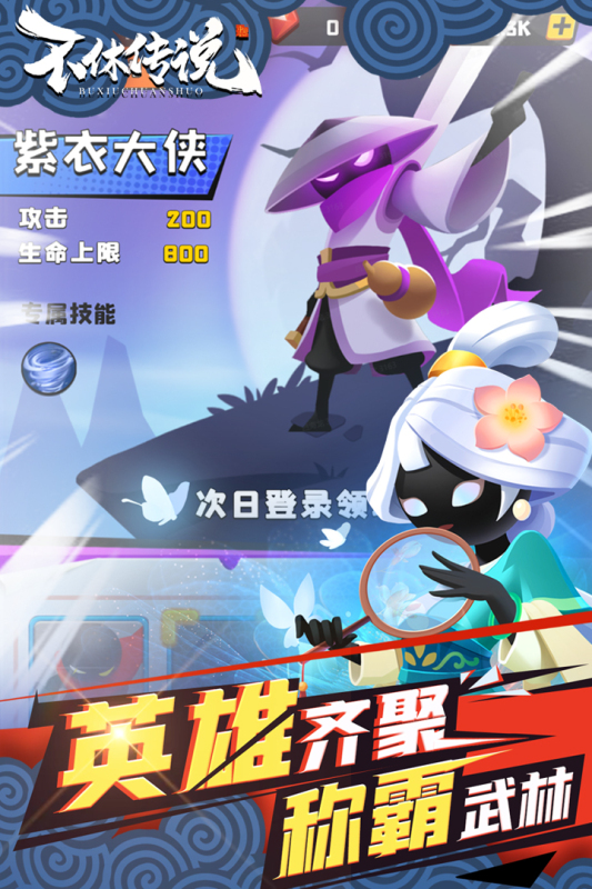《不休传说》是一款竖屏Roguelike休闲动作手游,单手闯关,爽快战斗。在游戏中玩家扮演一名寻找谋害父亲凶手的江湖侠客,在冒险中遇到武侠小说中的各种经典桥段,学习绝世武学,挑战各路高手,从江湖小虾米不断历练成绝世高手。
