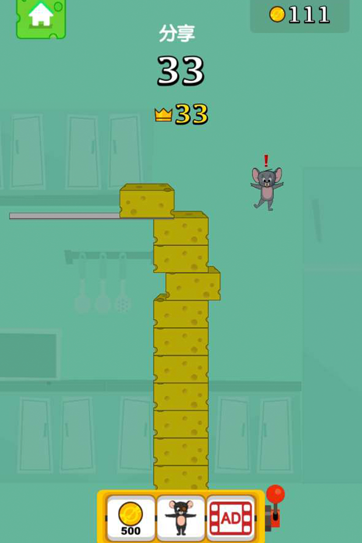 飞奔的奶酪是一款超可爱的向上跳跃小游戏。操控小动物向上跳跃踩住左右飞来的蛋糕,争取让蛋糕保持一条直线,这样才能跳得更高获得更高的分数。没有什么操作技巧就是考验玩家的判断能力。是一款上手容易但是取得高分不会很容易的小游戏。