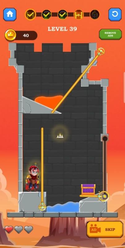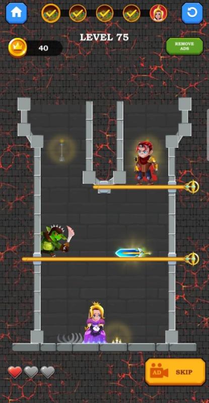 英雄地牢救援游戏是一款非常不错的闯关类地牢游戏,可以让玩家来最为快速的完成操作,有着一次非常轻松的找到逃离的方式,让玩家可以非常快速的找到各种隐藏的信息,直接的面对各种敌人,有着解救公主的玩法,有着一次非常简单的挑战,快速的进行游戏。 英雄地牢救援游戏特色: 紧张的救援任务将落在您的手中,所以您的时间不多了,请尽快执行。 超多的关卡都是精心设计过的,机关陷阱防不胜防,找到正确的路线。 难度正在逐渐增加,你将有很多思考和思考的空间,千万不要大意了。 英雄地牢救援游戏玩法: 游戏的关卡设计非常新颖,简单的图钉绘制方法使您轻松挑战; 您必须注意抽针的顺序,注意各种陷阱,拯救公主的重要任务就在您身上; 丰富多彩的游戏内容和有趣的游戏玩法使游戏体验更加轻松。 玩家简评: 仔细观察整体的结构,找到正确的方法打开每一扇门消灭掉怪物。 不要让岩浆或者水流伤害到你,两者相结合的话还能起到不可思议的效果。 机关设定非常奇妙,现在就让我们一起来完成挑战,营救美丽的公主。