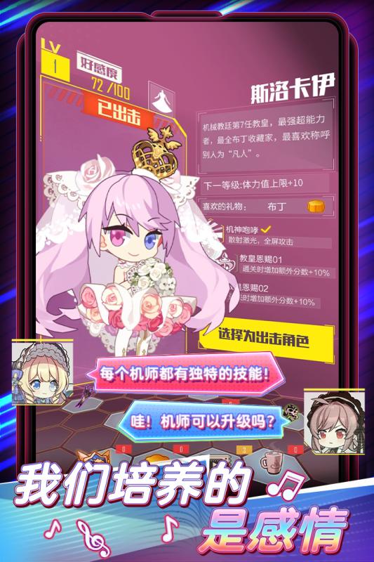 《伊甸领域》是款轻养成休闲节奏类手游。游戏作为《机动战队大作战》的衍生作品,里面包含了原作的人气角色和音乐,在这里教皇斯洛卡伊、玛蒂尔达、维斯帕、茱蒂丝……等机师将化身为萌系小萝莉,与指挥官一起肩负着保卫全新领域,防止敌人入侵的艰巨使命。