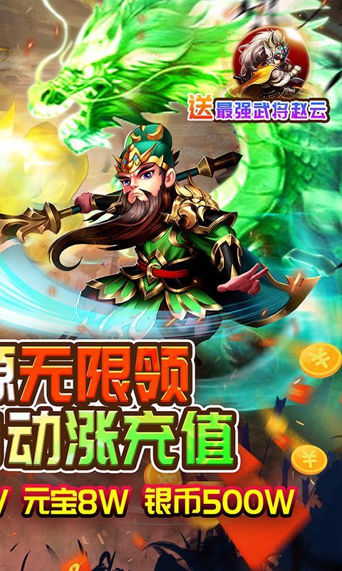 超爽横版三国回合手游-《戳爆三国(无限资源自动刷充)》震撼来袭!本次版本的福利力度与升级速率大幅上调,创角即送最强武将-赵云、时装、坐骑;游戏自带刷充神器,挂机打怪即可自动增加额度,各种礼包随意买!天天648,开特权、领奖励,毫无门槛!更有永久免费资源领取,还在等什么呢?快来体验吧!