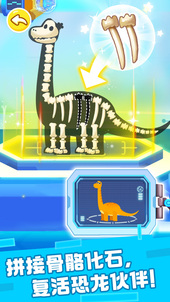 接下来返回基地,将搜集好的恐龙化石,按照恐龙骨架进行拼接,再启动神奇的复活机器,“嘀”——恐龙同伴复活成功!