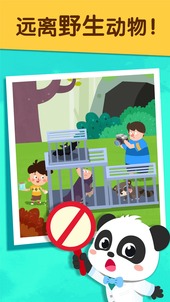野生动物身上携带大量病菌,所以宝宝要远离野生动物,不食用野生动物,不伤害它们。宝宝快阻止游客近距离接触野生动物;协助妙妙警官,抓捕偷猎者,维持生态平衡。