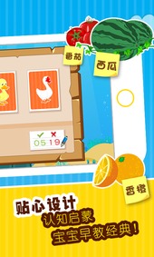 APP以趣味问答的形式,提高宝宝对动物、水果、蔬菜、国旗、交通工作、身体部位、生活用品、家用电器等多种常见主题的认知能力!
