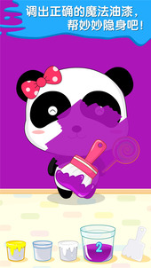 将不同颜色的油漆混在一起,调出正确的颜色刷在熊猫妙妙的身上,妙妙就可以像变色龙一样隐身啦。宝宝真棒!