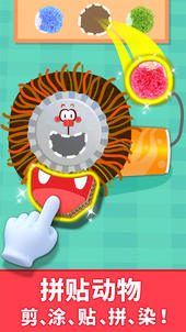 美妆时间到!为狮子设计酷炫发型。先用卷发器烫个泡面卷,再挑选颜色:红的黄的绿的,为狮子染出彩虹色!