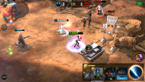 《星球大战:原力竞技场》(Star Wars:Force Arena)是一款策略对战游戏。玩法有点像《部落冲突:皇室战争》。游戏中玩家可以操控反叛军或帝国军中的任意一人作为主英雄,然后用卡组来打造自己的战队,与敌人进行战斗。喜欢此类游戏的玩家或者是星战系列电影的粉丝快来下载这款《星球大战:原力竞技场》体验试玩吧!