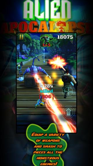《外星人启示录X》(Alien Apocalypse X)是一款动作跑酷游戏。外星人建立自己的基地,打算入侵地球,掠夺地球上的一切。这个时候英雄出现了,我们要用重力感应移动人物,通过跳跃躲避障碍,并点击射击键来消灭异形。通过收集金币,加强自身的装备来让自己跑得更远。完成任务,并销毁所有的外星飞船!我们还可以装备各种武器,更轻松的粉碎敌人!