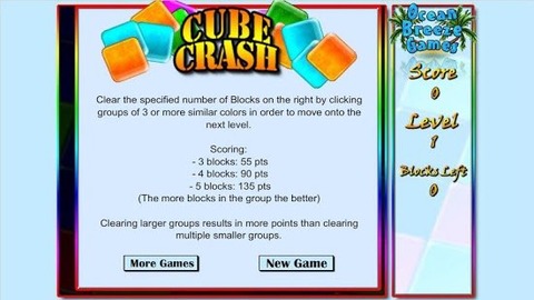 《方块碰撞 Cube Crash Free!》是一款休闲游戏,点击3个以上相连相同颜色的方块即可消除。最后剩下的越少你的分数就越高!