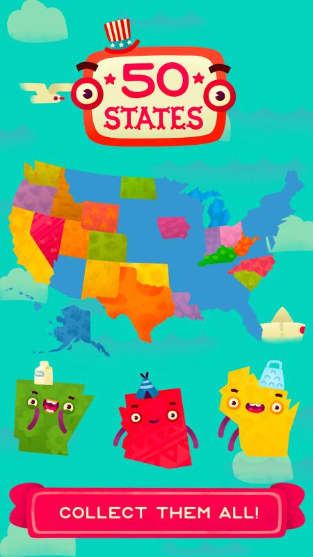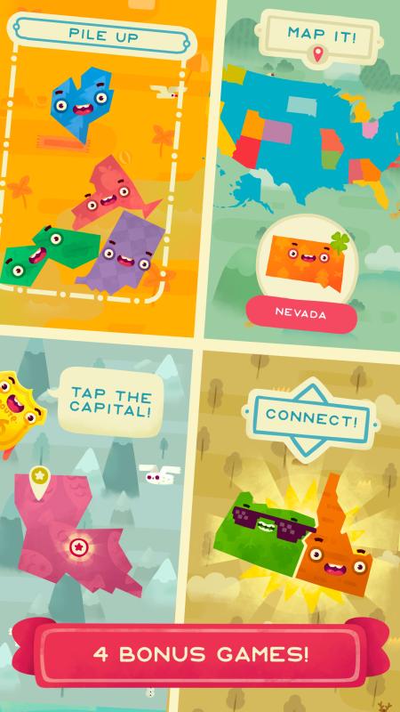 《50 States》是一款休闲的问答游戏。游戏需要回答问题来获得指定的小拼图碎块,搜集拼图碎块可以拼出地图,是一款具有教育意义的游戏。