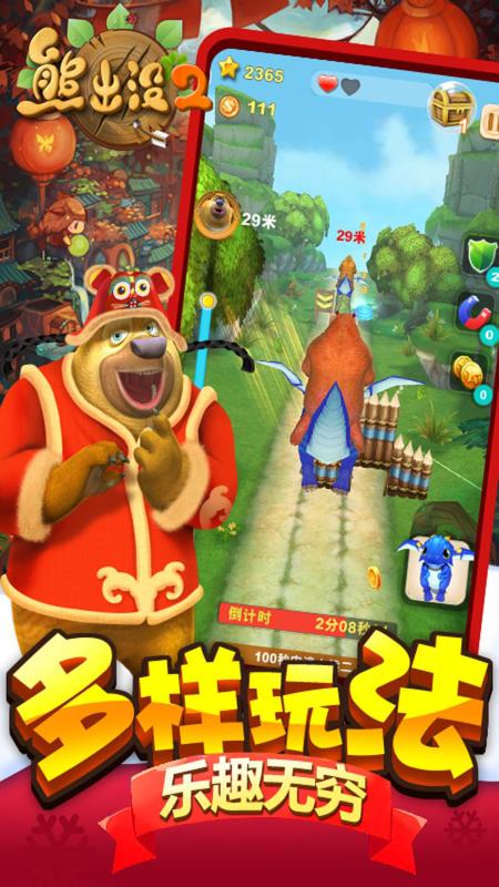 经典手游大作《熊出没2》全新归来!无厘头的搞怪剧情,让人捧腹大笑的游戏对白,极致高清的3D画面,狂拽酷炫的萌宠坐骑,震撼视觉的华丽特效,更多玩法尽在全新《熊出没2》!游戏根据同名动漫改编,官方正版授权,高度还原了原著动漫人物及场景。在游戏中你不仅能体会到“指尖滑动+重力感应”的混合型操作模式,还能在全新的关卡模式中体验到如同卡丁车一样的多人混战。