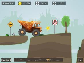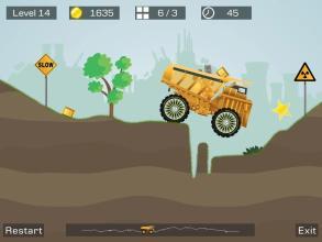 This game is all about being careful. At the beginning of each round, a precise number of goods will be dropped into your container. You have to touch the right of the screen for accelerating, the left of the screen for slowing down and tilt the device for balancing the truck. On the top side of the screen, you will find a timer and the goods count in your container and level required. You have to find the perfect balance between reaching the end of the level rapidly and doing so without dropping too many goods. The only way you can lose is if you don’t transport enough goods or if you manage to turn the truck upside down. In this case, you will have to retry.