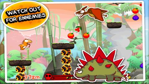 《小恐龙快跑》是一款以跳跃为主的跑酷游戏。一只小恐龙刚刚破壳而出,却发现只身一人,它需要你的帮助,带着它穿越原始森林,路上不要忘记寻找一切可能的食物哦。操作非常简单,只要你轻按屏幕就可以通过跳跃越过障碍、敌人、熔化的熔岩和流沙。在清新精美的游戏里,和超萌的小恐龙一起来冒险吧!