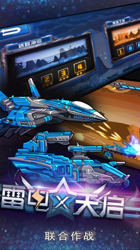 《联合作战:雷电X天启》是首创飞机坦克联合作战的飞行射击类游戏。多种战机坦克选择、画面精彩、特效华丽,快来升级组合武器,参与刺激的BOSS战斗吧!游戏闯关难度较高,喜欢此类游戏的玩家赶紧下载体验一番吧!