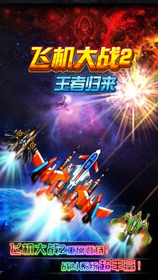 《飞机大战2:王者归来》是一款传统的飞行射击类游戏。玩法简单,操作灵活,触屏按住随意一个地方,左右移动,便可自动攻击敌人,上下移动亦可躲避强敌。画面华丽细致,加入合成副炮系统,更能获得S型极品副炮,全新的系统让你欲罢不能!给玩家一个与众不同的飞机体验。几十种敌机,20种以上的BOSS等你挑战,畅快淋漓的战斗,加上华丽并真实的视觉体验,将让你爱不释手!