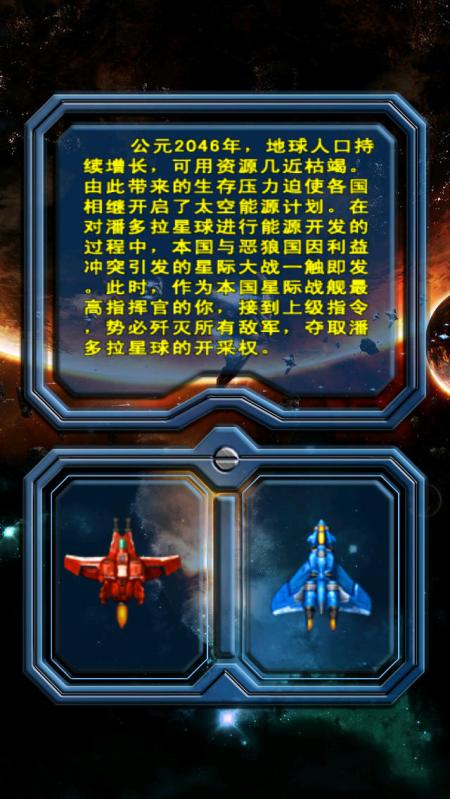 游戏背景:公元2046年,地球人口持续增长,可用资源几近枯竭。由此带来的生存压力迫使各国相继开启了太空能源计划。在对潘多拉星球进行能源开发的过程中,本国与恶狼国因利益冲突引发的星级大战一触即发。你将驾驶操控地球上最先进的雷电战斗机,与敌人在海陆空进行立体作战。本作中加入了电脑游戏才能见到的粒子效果系统,逼真的电影CG动画,震撼的爆炸特效,爽快的必杀技能,华丽的游戏场景,绚丽多彩的弹道,高帧的流畅游戏画面,精准的操控还原飞行游戏的精髓!刺激火爆的场面体验堪比PC大作,手机飞行射击游戏的最新标杆,强烈推荐!