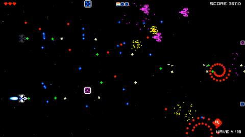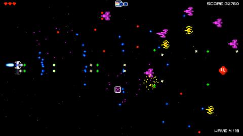 《太空:流星(Rapid Star: The Space)》是一款8-bit像素风格的弹幕小游戏。该作的容量体积小巧仅五兆左右,轻盈别致;游戏采用了复古怀旧的像素化设计元素、横版下降式的画面场景。游戏画面及玩法虽然十分单调且简单,但玩起来还是十分带感的,射击及躲避的精髓就看你能掌握到什么程度了。喜欢的朋友快点下载下来试试吧。