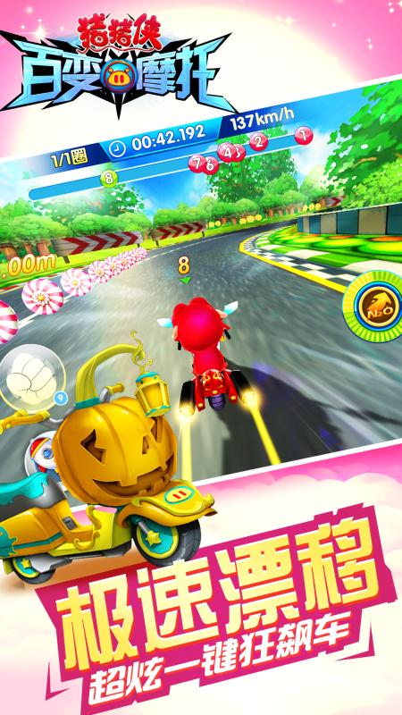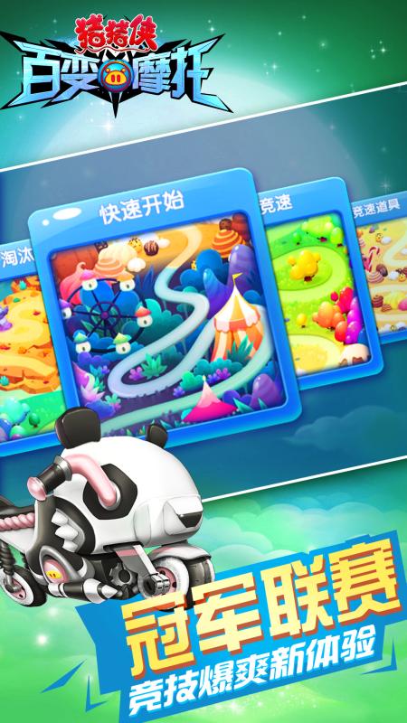 化身猪猪侠骑着摩托驰骋在赛道上吧!《猪猪侠百变摩托》是以国产人气动画片《猪猪侠》为题材的竞速赛车游戏。全新摩托赛道结合全新漂移玩法,打破普通摩托手游的理解,加入变身,联网等新系统,还有更多新角色等你来发现,新摩托等你来驾驭!在国内猪猪侠有着许多大奖,《猪猪侠百变摩托》将猪猪侠动画的特点体现的淋漓尽致,呈现给玩家一个特别的手游。