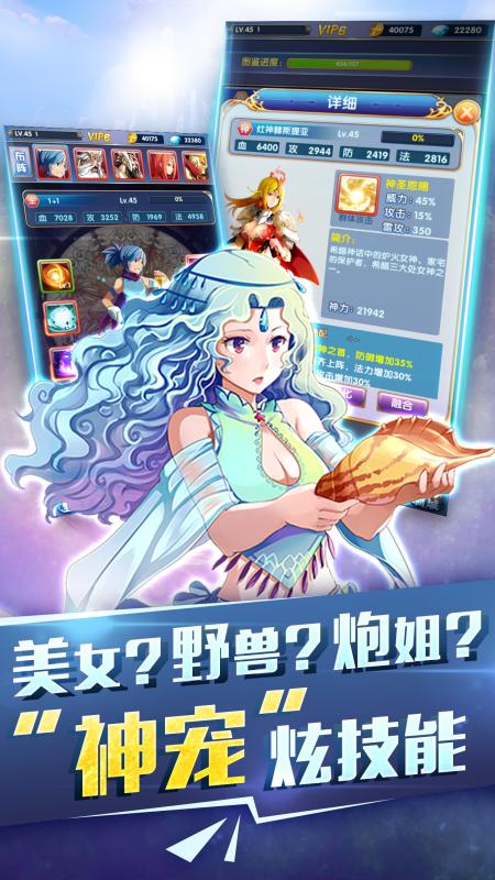 《卡牌幻想》以北欧神话为背景,精心打造的魔幻画风的二次元游戏,打造2017年最好看,最好玩,最梦幻的精品手游!具有童话般感性的可爱角色。娇小可爱,且精致的角色设计。充满逼真感的人物绘制,以自然的动画,体现最佳的打击感。各种各样的英雄和技能,100多名英雄角色,多达200种的技能组合。随意搭配,随意组合出最适合您的阵容。刺激挑战欲望的PVP和BOSS战斗,玩家每天可以在竞技场与其他玩家进行挑战,并可对世界BOSS发起攻击,获得高额奖励。