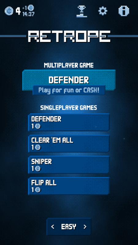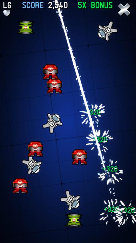 《守护》(Retrope)是一款是复古科幻射击手游。游戏画面采用了复古像素风格,显得更有意味。游戏的目的就是通过射击来清除障碍或者外星飞船,保护当前关卡的目标,被保护的目标可能是宇航员,也可能是一颗行星。而游戏的玩法与一般的射击游戏有所不同,玩家将采用画线的方式来进行射击,当你画下一条线后,子弹将会贯穿整个画面,被击中的物体都会粉碎。