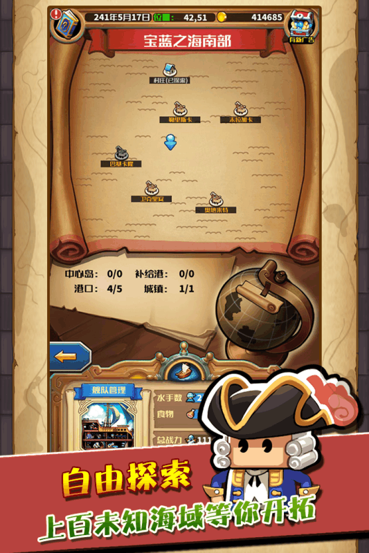 你作为一只舰队的船长,不光要通过买卖商品,完成委托赚取资金;还要为你的每艘船的各个船舱安排海员进行工作;率领舰队探索未知海 域,发现各种神奇的宝藏;和为非作歹的海盗展开殊死搏斗,还需要为了维护世界和平讨伐巨大的海怪……