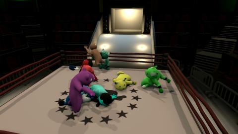 Gang Beasts is a silly local multiplayer party game with surly gelatinous characters, brutal melee fight sequences, and absurdly hazardous environments.