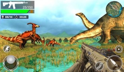 FPS侏罗纪恐龙猎人是一款十分优秀的射击生存冒险游戏。在这款游戏中玩家们将会成为一名侏罗纪世纪的恐龙猎人。在这里你可以看到许多本在侏罗纪时期存在的史前巨兽们,要想在这个几位凶险的环境之中生存下去就必须要能够尽力去利用你的枪弹资源!