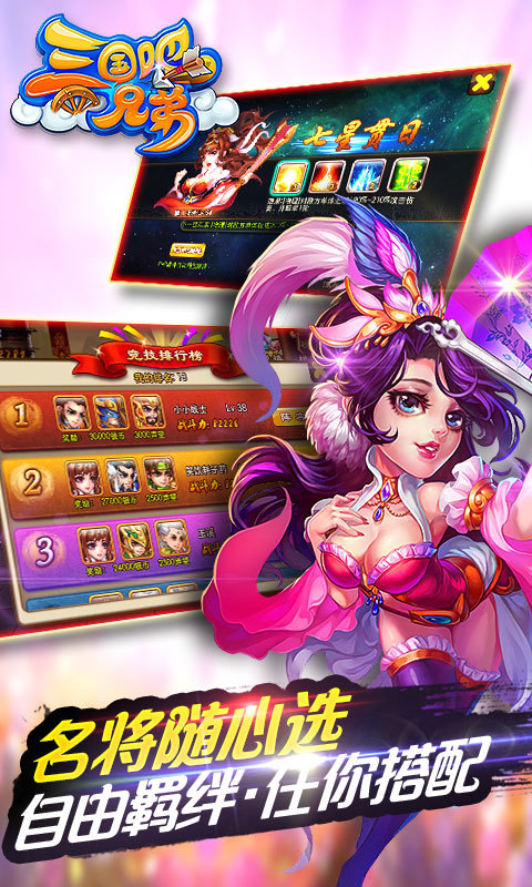 高逼格,良心作!第四代动作卡牌手游《三国吧兄弟》首创即时奇策、官阶晋级、机缘升级等全新玩法,将卡牌与动作完美结合!更有铜雀台、白虎洞、竞技夺宝等多种PVE、PVP游戏模式。Q萌的画面,炫酷的特效,颠覆式的爆笑穿越剧情,上万套武将、装备、阵法搭配。指点如画江山,逐鹿万里中原,一起三国吧,兄弟!