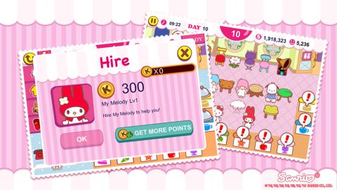 《Hellp Kitty咖啡厅》一款模拟经营类的小游戏。在游戏中,你可以聘请你最喜欢的Sanrio人物来帮忙,每天与Kitty一起经营咖啡生意。在物品店中选用一个以漂亮Kitty为主题的家私装饰场景,重新摆放里面的设施,如桌椅等,将你的咖啡店装扮成史上最可爱、最舒适和最幸福的场所。你可以学习新的美食谱,提升咖啡厅的级别。但是要面临的挑战是:你要非常快速地提供食物给每一位客人,要讲求工作效率,不能让客人们不满意而生气地走了。如果你的咖啡店始终能提供优良的食品和一流的服务,那就会有一位神秘嘉宾来光临哦。喜欢这类可爱游戏的玩家快来玩吧。