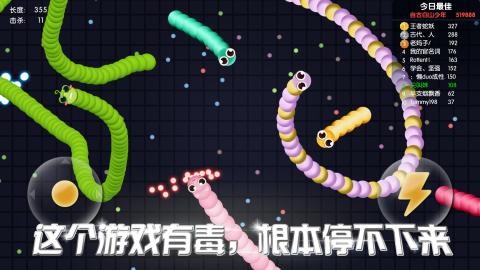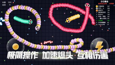 【这个游戏有毒,根本停不下来】 小时候玩的经典游戏《贪吃蛇》回归了!熟悉的蛇蛇,全新玩法等你来挑战!加速用身体截击对方蛇头,小蛇也能强势逆袭;吃货无罪,收集散步实物,越吃越强;数种可爱皮肤,打造属于你的最萌蛇蛇;随时随地,拿起就上,好玩不累! 这是一款令人停不下来的休闲竞技贪吃蛇手游!多人实时对战,经典贪吃蛇玩法全新进化,!还在玩别的游戏?那你就out啦!快来成为全球最长的蛇蛇吧! 游戏玩法 1.控制摇杆走位你的小蛇,不断吃掉小光点,成为世界最长蛇蛇! 2.小心!蛇头碰到其他贪吃蛇就会死亡,并且产生大量小圆点。 3.长按加速键,用巧妙的走位让蛇身被别人撞上,U型包围、小蛇狂奔、联盟围堵,逗趣好玩的策略战斗让你瞬间逆袭! 4.无尽模式or限时模式,和小伙伴们比比谁更长吧! 游戏特色 【以小博大,战局随时都会逆袭】 你长你有理,我短我灵活!大蛇不再有统治性的地位,小蛇们更灵活,战局随时都有可能逆转! 【“老少通吃”的游戏伙伴】 跨房间,跨楼层,跨年龄层,跨国界,在这款游戏里,你遇见谁都是有可能的喔。斗智斗勇吧,把朋友吃掉,把邻居吃掉,把陌生人吃掉……咦,怎么听起来有点邪恶呢,但真的很好玩啊!哈哈哈! 【战斗技巧,老司机教你几招】 急速超车拦截蛇头、急停甩头抢道、180度华丽飘逸、画个圈圈诅咒你…这些都是战斗技巧! 谁说贪吃蛇大作战只靠手速?策略也很重要,当然如果你恰好单身又练过手速 —— 完美! 添加10种皮肤 本次更新包含稳定性和性能提升 感谢您对我们游戏的支持!