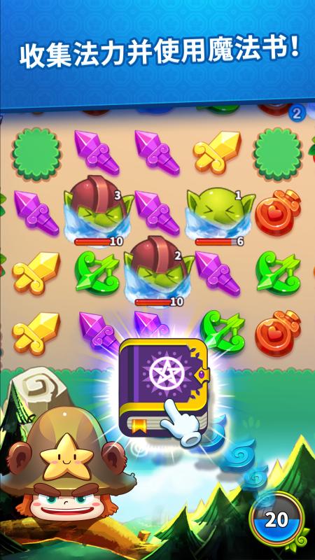 符文大师的开发者的新的难题游戏 ! 令人兴奋的难题战斗,你可以打败怪物入侵你的拼图世界! 让我们开始在幻想曲,魔术世界。 有'趣趣'作为你的指导,通过匹配3个谜题击败怪物! 你会在幻想曲遇到许多神秘,危险和惊人的事情。 不要担心什么!一旦你匹配3个拼图石头,你的特殊魔法会使所有的障碍什么! 用魔杖,弓,剑打败怪物。 用药水治疗你的HP,使用魔法书的魔法来攻击怪物。 然后你会去上级别! 救救英雄,使他们成为你的朋友! 你可以召唤他们在舞台上和对抗怪物在一起。 这里有一些建议,你的旅程在幻想世界。 - 有时,你可能只是幸运,轻松解决你的问题。 - 另一方面,你还需要计划惊天的战略,在困难的关卡。 - 所有棋石头都有自己的特色。 - 在板中使用魔法书来获得强大的变化。 - 后解决特定级别 , 你可以召唤英雄。 - 有些英雄可以攻击怪物,其他英雄可以帮助你的HP或MP。 - 你可以通过在地图上打开宝盒来获得附魔。 - 有时候,你必须捍卫你的英雄。 - 可以有召唤怪物门户。 - 你可能会看到一些波浪,使怪物在特定的周期在困难的关卡。 - 一些特殊的怪物有魔法的力量。 - 你会发现在任务级别解決给定的任务很有趣。 - 选择有效的英雄来击败敌。 - 有些英雄可以攻击怪物,其他英雄可以帮助增加HP或MP。 - 你可以成为行家,当你可以利用英雄的特殊技能。 - 记住,你可以加强你的英雄。 添加20个级别。 添加锦标赛 - 尝试与世界各地的人每周竞争拼图技巧。