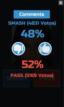 Choose your favorite youtuber or celebrity and see other people's answers. This app shows you which famous person is more ash, because the application stores the answers from other people around the world. Enjoy this fun game that reproduces the most popular challenge in youtube, the ash or pass game, it’s easy to use, you are going to see an image of a random personality and you can choose between two buttons, Smash or Pass, when you hit the button your answer Is stored and you will see the results from around the world of other people as well. The app has a comment section where you can write your opinion about the celebrity or youtuber of the last question. This game presents itself in form of a quiz where you have only two options, so are going to pass this popular person or not? Fair use in the images used in the game: The images used here are used under fair use as: They are of much lower resolution than the originals; Their use does not impair the copyright holder's ability to sell or promote their products in any way; They are being used only for informational purposes; Their inclusion adds significantly to the game because it illustrates the meaning of the words All of the images are licensed under the Creative Commons Attribution 2.0, 3.0, 4.0 or Public domain All Attribution are inside the game 150 new personalities added