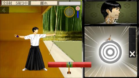 世界初!本格弓道ゲームが手の中に。 弓道をやったことがある人も、まったく知らない人も弓道の世界を体験できます。 左右のバランスをとりながら、引っぱって離すだけ。 的に中るかは自分との勝負! 的中率の表示の不具合を修正