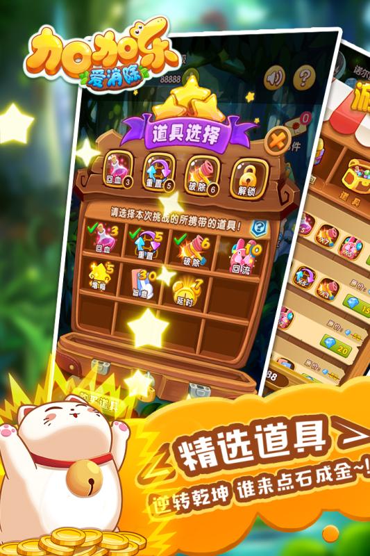 《加加乐爱消除》是一款可爱、有趣的消除类三消手游。搞怪有趣的卡通动物数字角色,绚丽爽快的特效画面,让您欲罢不能。全新的消除手法,让您体验到与市面上传统三消不一样的特殊体验。看似简单的游戏规则,实则烧脑虐心,极高的挑战乐趣,让您停不下手!