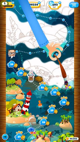 这是一款画风清新的休闲游戏,玩法很简单,玩家先射出一颗基础水滴去消除并吸收画面中的色彩,当小球被弹回来时就用手在画布上画出一根球棒将它弹回去,不断持续最后将所有色彩清空即可,通关还能为素描画上色哦。