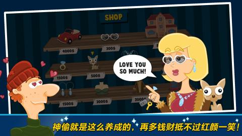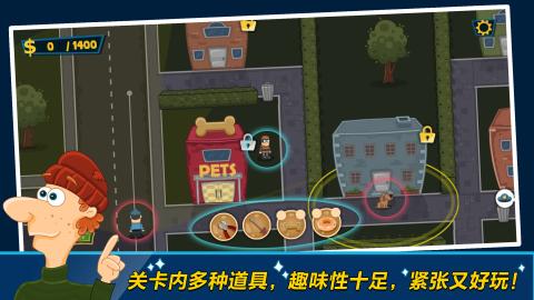 《超级小偷 Super Sneak》是一款益智闯关游戏。主人公本是个安分守己的骚年,从小到大都规规矩矩的,经常还做点好事儿,比如扶着老奶奶过马路神,然而他爱上了个妹子,在和妹子求婚的那个晚上,妹子要求的物质条件让他崩溃,迫使他在小偷养成这条路上越陷越深!为了变强,为了泡妞!至此,史上最强小偷诞生了!偷金,盗宝,偷取女人心,他无所不偷,无往不利!