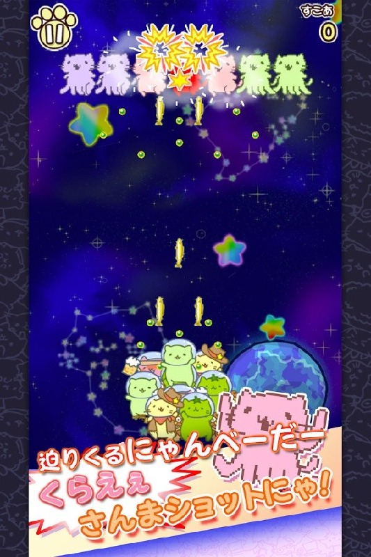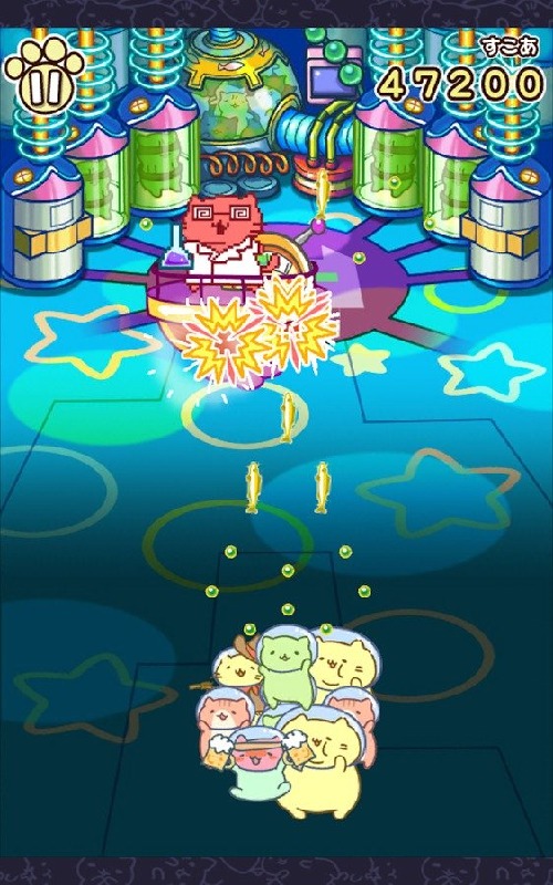 《猫猫大危机》为一款太空射击手游。玩家要和猫猫们一起在太空飞行,游戏玩法与一般游戏相同,不过武器却从子弹变成了三文鱼了。