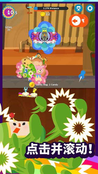 这款游戏采用传统的横版闯关模式,玩家将扮演魂王子,通过点击屏幕让王子推动小球往向前进,王子手中的小球会不断粘附各种大小不一的物件和金币。你点击一下可使得王子的推动力就越强,移动得越快,即便是不点屏幕王子也会把球往前推,每一个大关共有10个小关,在大关的最后一小关里,只要在规定时间内吸附完规定的物品就可通关。玩家还可以利用金币购买道具和增加点击效率,招募小伙伴一同与你奔跑,配合着音乐和斑斓充满想象的画面,整个游戏过程十分的轻松愉快。